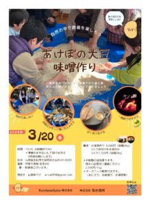 2026年3月20日「あけぼの大豆味噌作り」を開催します!! ご参加お待ちしております♪ 問合せ:山…